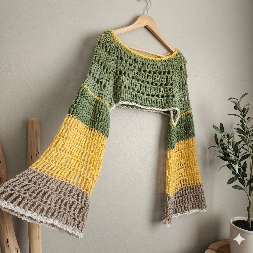 Designed for the modern bohemian, this crochet shrug is the ultimate statement piece for your wardrobe. Whether you're dancing at a summer music festival, strolling along the beach, or adding an artistic layer to your daily look, the Solstice Bell Shrug provides that effortless, airy vibe you've been looking for.